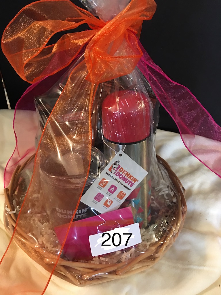 Dunkin Donuts coffee basket and 1 year subscription to Cheshire Herald.